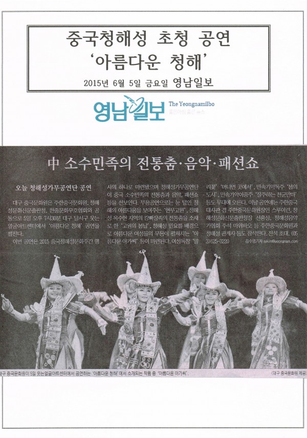 2015.06.05 영남일보) 중국청해성 초청 공연 페이지 정보 작성자 중국문화원 작성일15-06-11 09:36 조회2,466회 댓글0건 이전글 다음글 본문 영남일보 댓글목록 등록된 댓글이 없습니다. 이전글 다음글